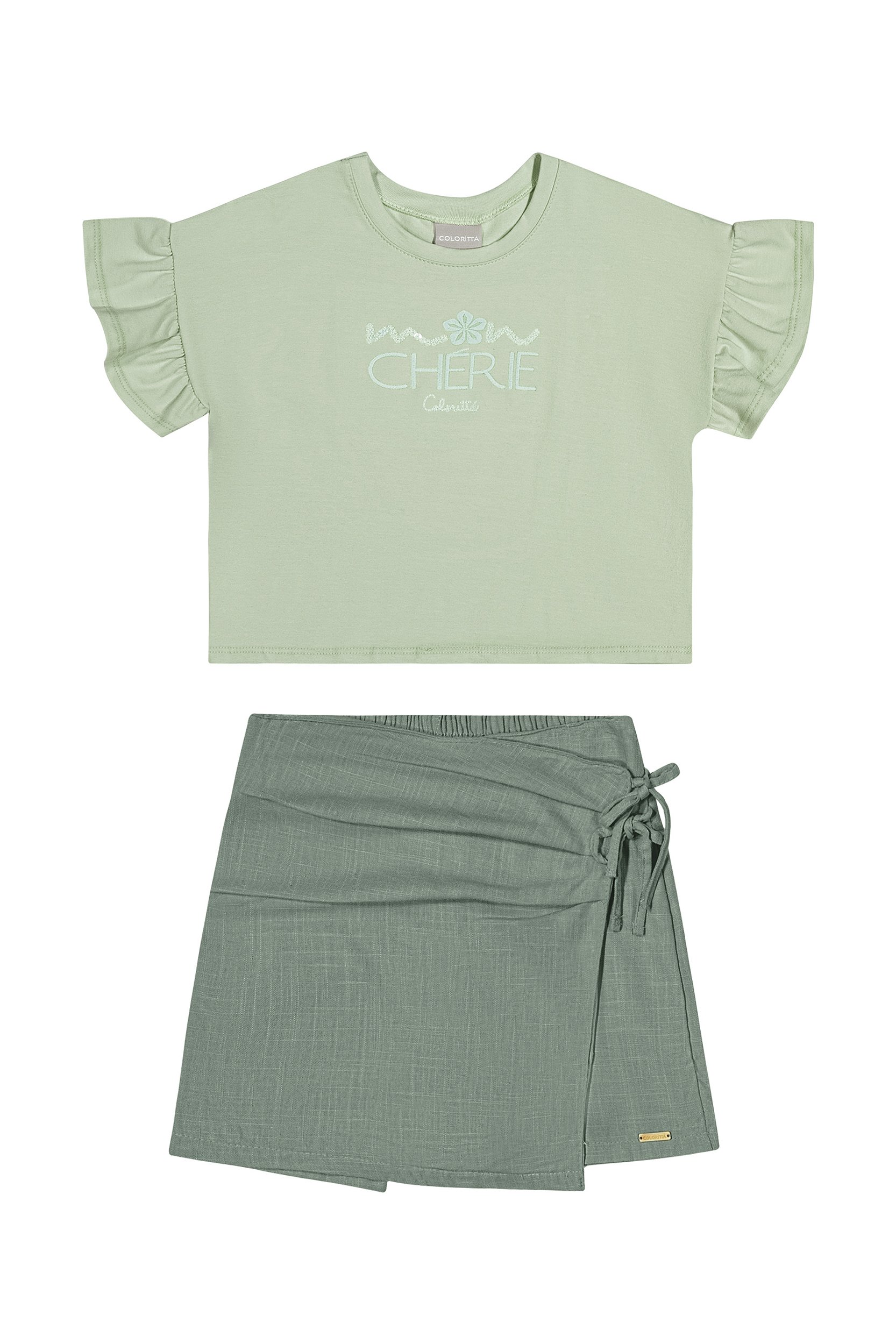 CONJUNTO BLUSINHA DETALHES BORDADO E PAETE