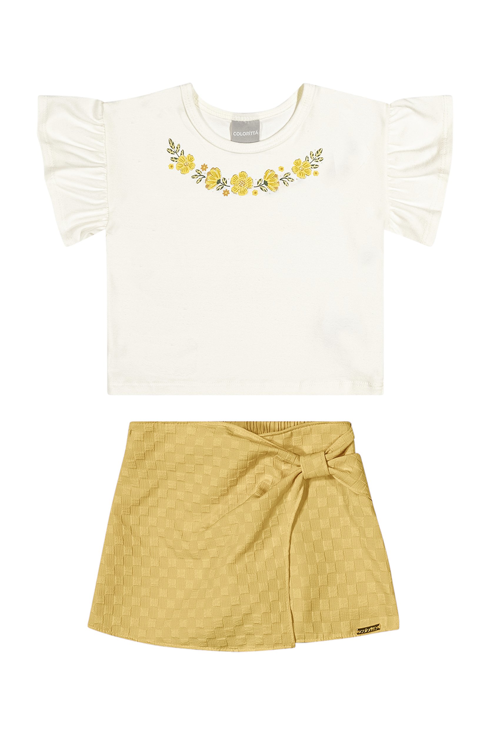 CONJUNTO BLUSINHA OFF E SHORTS SAIA